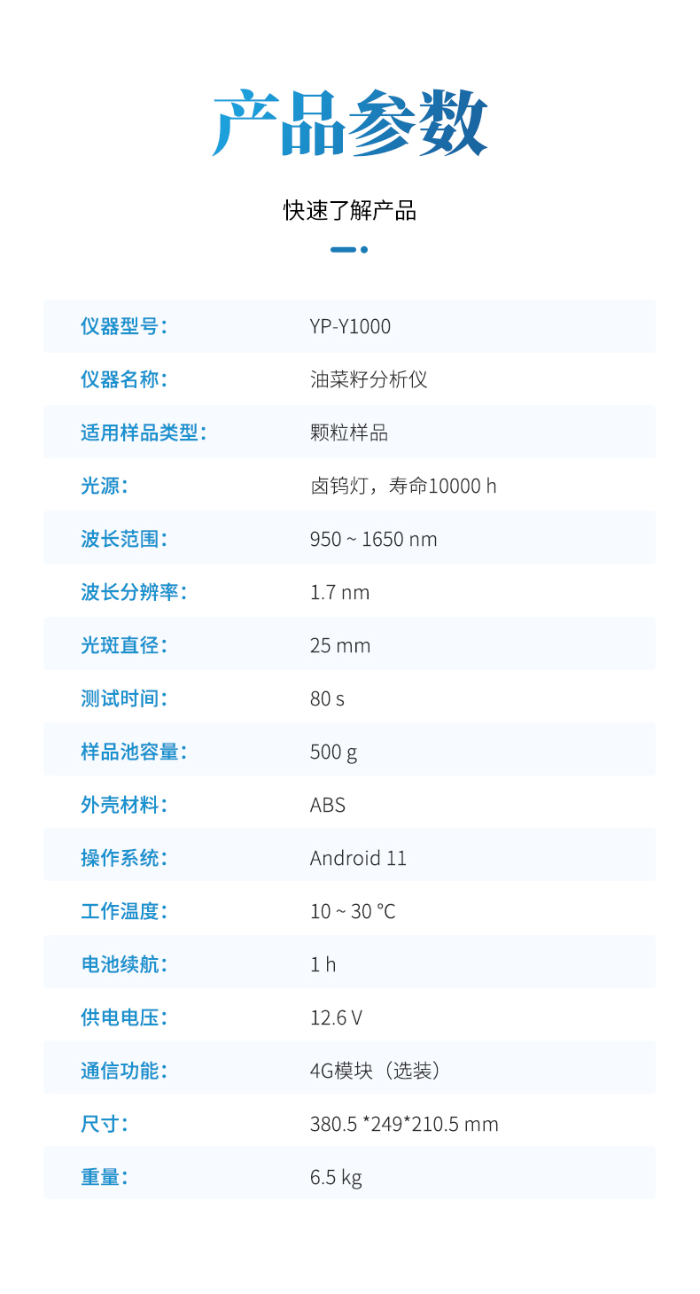 優云譜光電科技致力于近紅外油菜籽分析儀的生產與研發,提供近紅外油菜籽分析儀的報價方案及技術支持,擁有多年的儀器制造經驗,歡迎來電咨詢。