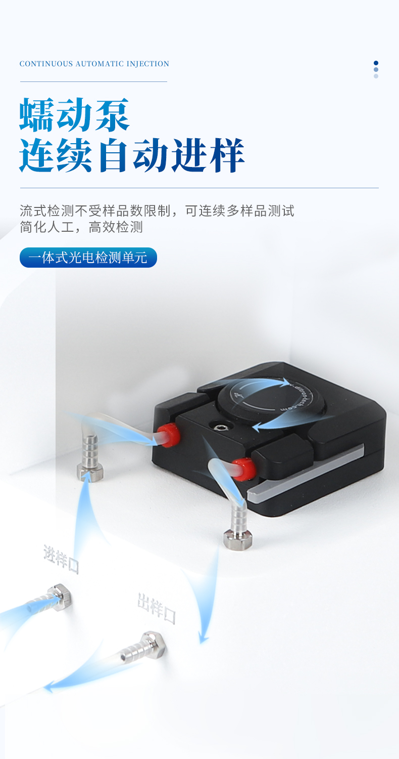 2、★采用蠕動泵連續自動進樣,流式檢測不受樣品數限制,可連續多樣品測試。