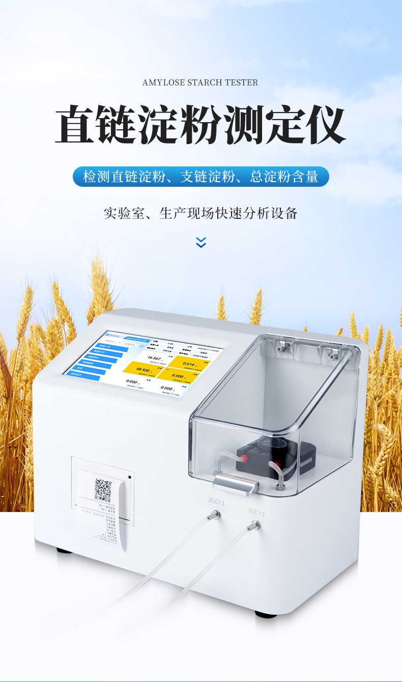 新一代智能直鏈淀粉測定儀集自動進樣技術和光電檢測技術于一體,是一種既可供實驗室使用,又可用于生產現場分析測試糧食直鏈支鏈、淀粉的快速分析設備。該儀器可用于大米,玉米,小麥、小米、馬鈴薯等糧食谷物的直鏈淀粉品質的快速檢測。該儀器內置標準工作曲線,是糧食部門和食品加工部門提高糧食直鏈、支鏈淀粉檢測水平與效率,控制糧食質量與成本的理想檢測儀器。