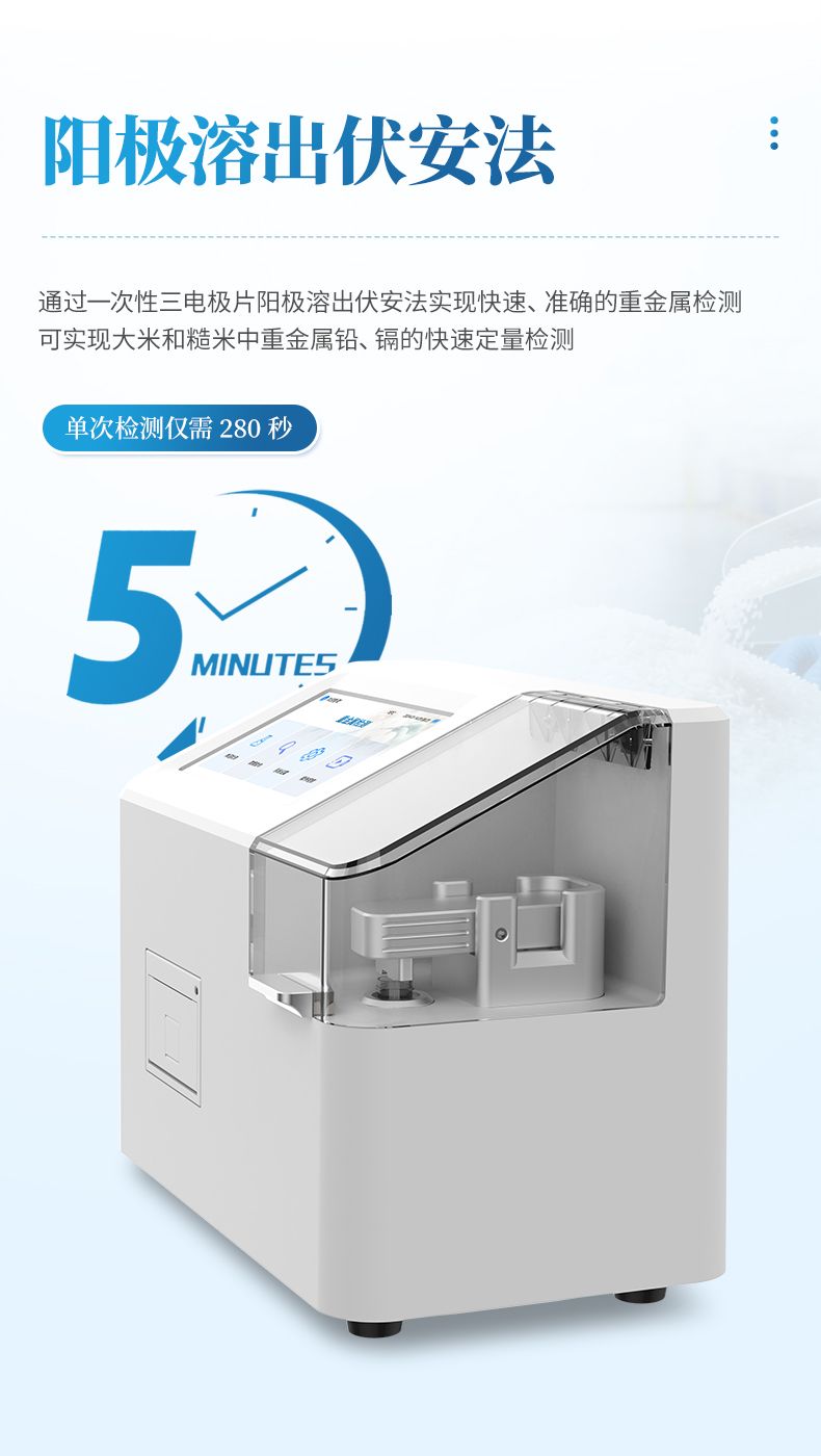 伏安法重金屬檢測(cè)儀(糧食重金屬速測(cè)儀)是一款高精度的電化學(xué)分析設(shè)備,專用于檢測(cè)大米和糙米中重金屬鉛、鎘的含量。該儀器通過一次性三電極片陽極溶出伏安法實(shí)現(xiàn)快速、準(zhǔn)確的重金屬檢測(cè),配合絲網(wǎng)印刷電極耗材和簡(jiǎn)易的樣本前處理方式,可實(shí)現(xiàn)大米和糙米中重金屬鉛、鎘的快速定量檢測(cè)。